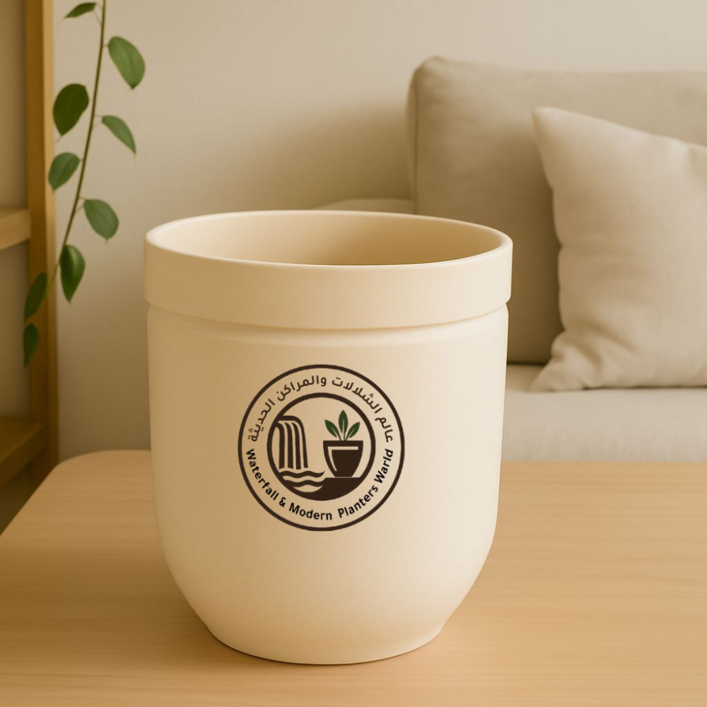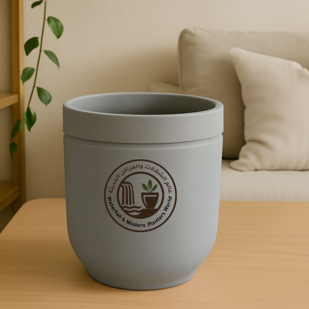 • الشكل: أسطواني مائل قليلاً نحو الأسفل بحواف علوية بارزة