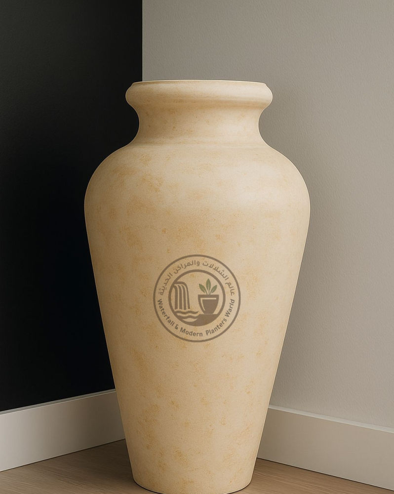 ارتقِ بأناقة ديكورك الداخلي مع هذه القطعه الفريدة المصنوعة من الفايبر غلاس المتين بلمسات ناعمة. تتميز بشكلها الكلاسيكي المستوحى من الفازات التراثية، لكن بروح عصرية تعكس الذوق الرفيع لمحبي التصميم الفاخر.