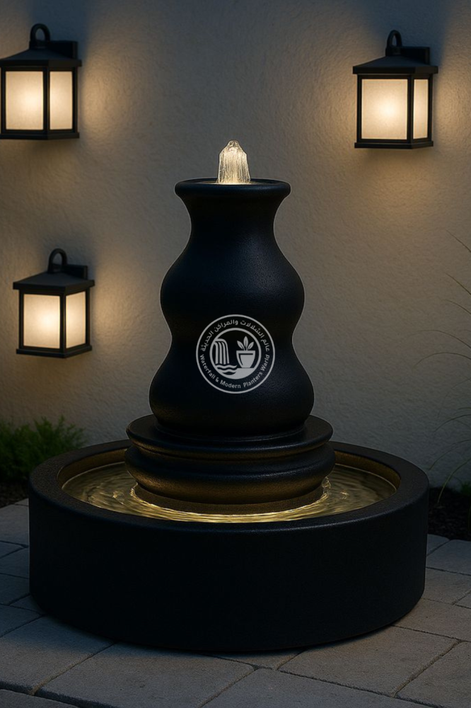 استلهم أجواء الفخامة مع هذه النافورة الرائعة، المصممة من الفايبر جلاس عالي الجودة. تضفي النافورة لمسة من الهدوء والجمال على أي مساحة خارجية بفضل تصميمها العصري والإضاءة المتناغمة التي تنبعث منها. مثالية لإضافة سحر طبيعي في حديقة منزلك أو فناءك الخاص.